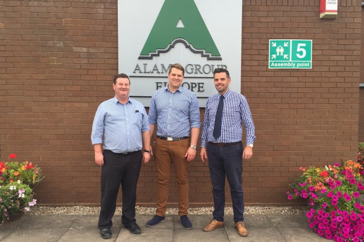 Richard Capper (left) Director visited with Mark Hamilton (centre) Customer Support. The purpose of the visit was to view the new products that Bomford Turner have on offer, including the Kestrel VFA range, and the Flailbot remote controlled slope mower.