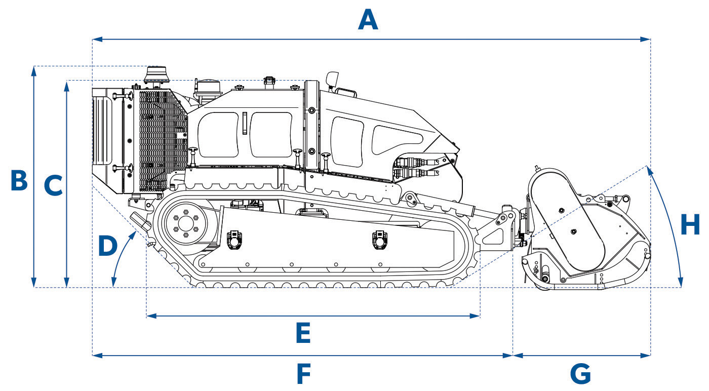 The Flailbot Supreme Stage V / T4 Final is the most powerful model in the range. Fitted with a Perkins Stage V tier 4 Final engine producing over 270 NM of torque it also comes with hydraulic adjustable track width and auto track tension system as standard.
