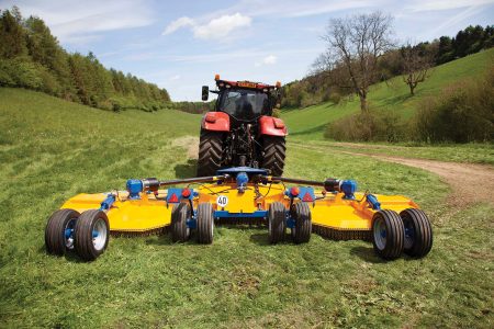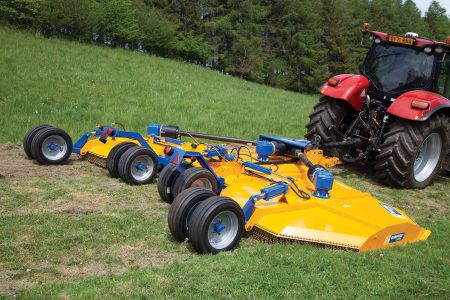 The Tri-Wing flex mower, specifically designed for large open spaces, with wide-angle constant velocity drive shafts and in-line slip clutch protection.